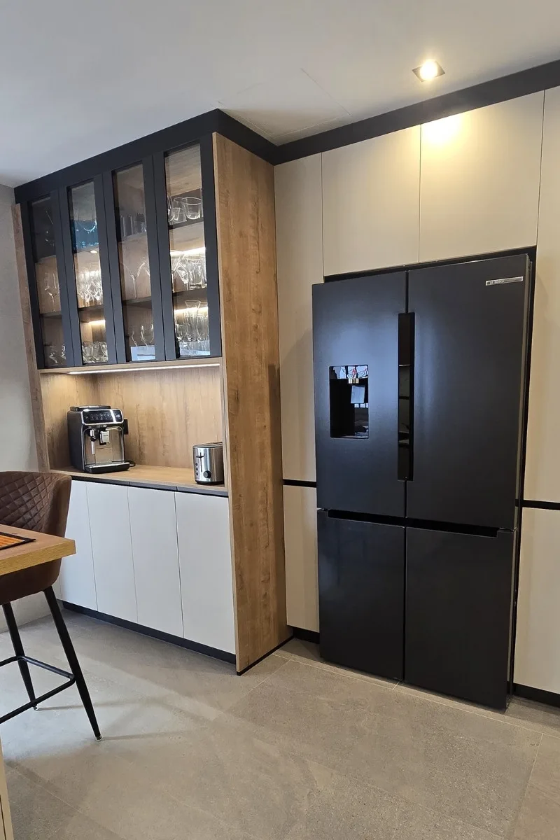 En este proyecto de reforma de cocina en La Cañada, Paterna (Valencia), el objetivo era crear un espacio elegante, funcional y muy acogedor, combinando tonos claros con madera y detalles en negro para conseguir una cocina moderna, equilibrada y muy práctica para el día a día.