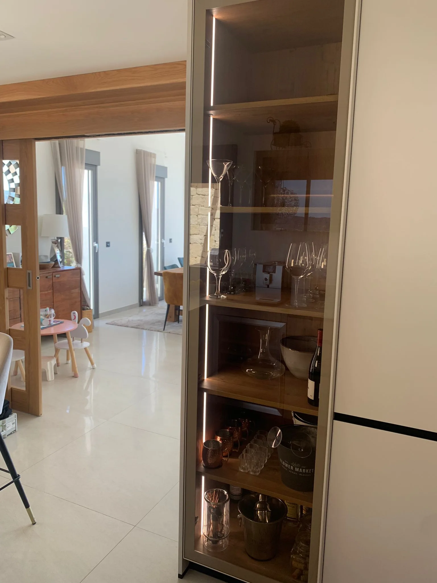 Zona de columnas con vitrina orientada al comedor